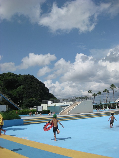 難関だった作文がなんとか書き終わったから、お昼頃バスに乗って40分、大きなプールに遊びに行った。