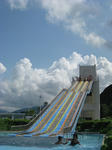 流れるプール、ちびっこプール、滝のプール、造波プール、ジャンボ滑り台があった。