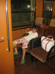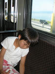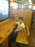 やっと電車が来て乗り込むと、だいちはがたんごと~んの揺れで睡魔に襲われ、海の見える最高の場所で熟睡zzz