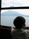 海沿いのすぐ近くを走る電車からは桜島も綺麗に眺められる。
