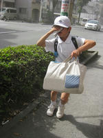 今週は給食当番だったようで、給食着と食器カバーを洗濯に持ち帰ってきた。