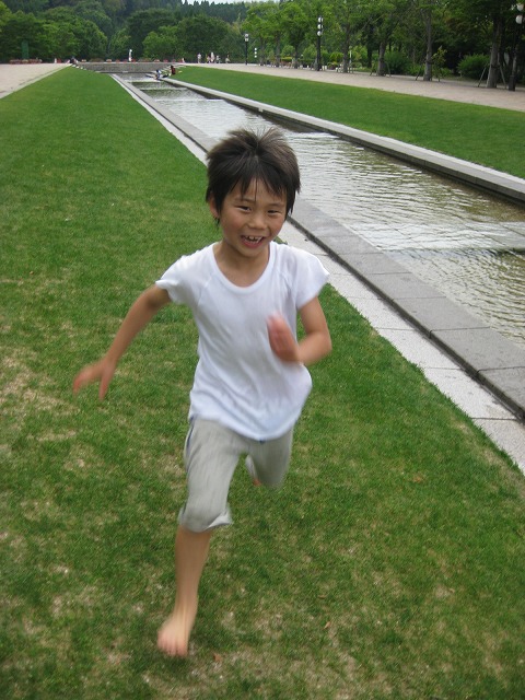 早速広々した芝生の広場で野球ごっこをして汗をかき、お昼ご飯。