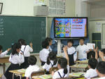 教科書、黒板、電子黒板を使って勉強してるのね。