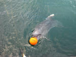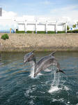 ちゃんとお姉さんの指示にしたがって遠くまで移動してくるイルカたち。