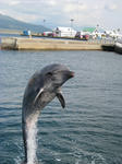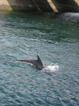 最初は自由に遊んでいたイルカたちだったけど、船に乗ったお姉さんがやってくるといろいろな技を見せてくれた。