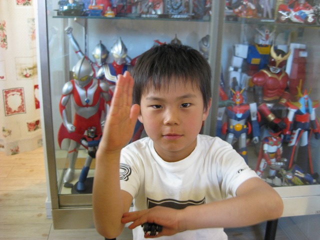 外側からはわからないけど、中に入るとウルトラマンや仮面ライダーなどのコレクションがたくさん飾ってあってだいち大喜び♪