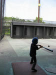 隣の敷地にバッティングセンターもあり、だいち初体験。
