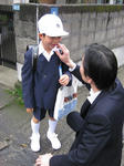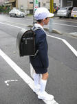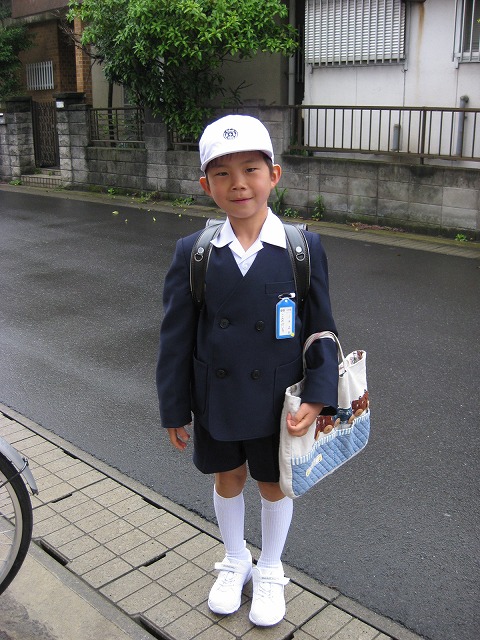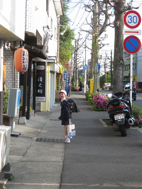 緊張感いっぱいの心細そうな後ろ姿、上級生に交じって学校へ向かう姿に涙ぐむ母なのでした。
