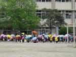 校庭で1度集合してから、帰るルートごとにまとまって下校しているようだ。