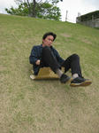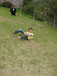 ものすごい急斜面の芝スキーもあり、売店でそりも売っていたけど、パパが持っていた段ボールで滑ってみたらよく滑った。