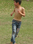 あまりの暑さに裸足&上半身裸のだいち。