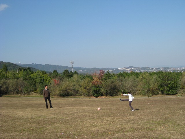 遊具を一通り遊び終えると、持参したサッカーボールで遊んだり、小さいボールでキャッチボールしたりして遊んだ。