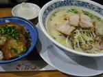 私はだいちと2人で駅ビルの豚骨ラーメン屋さん(ざぼんラーメン)でお昼ご飯。