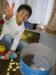 パパの職場の人が釣りに詳しく、釣り道具やえさなど一式を貸してくれて、釣り方も教えてくれた。