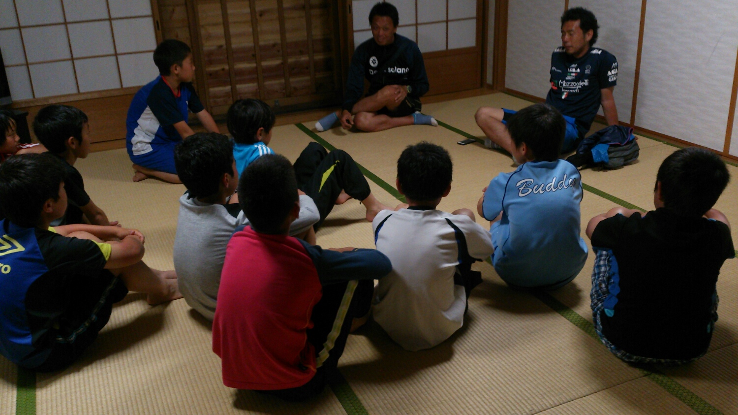 夜の反省会では今日どうだったか。目標に対して出来たところなどを1人ずつ発表した。