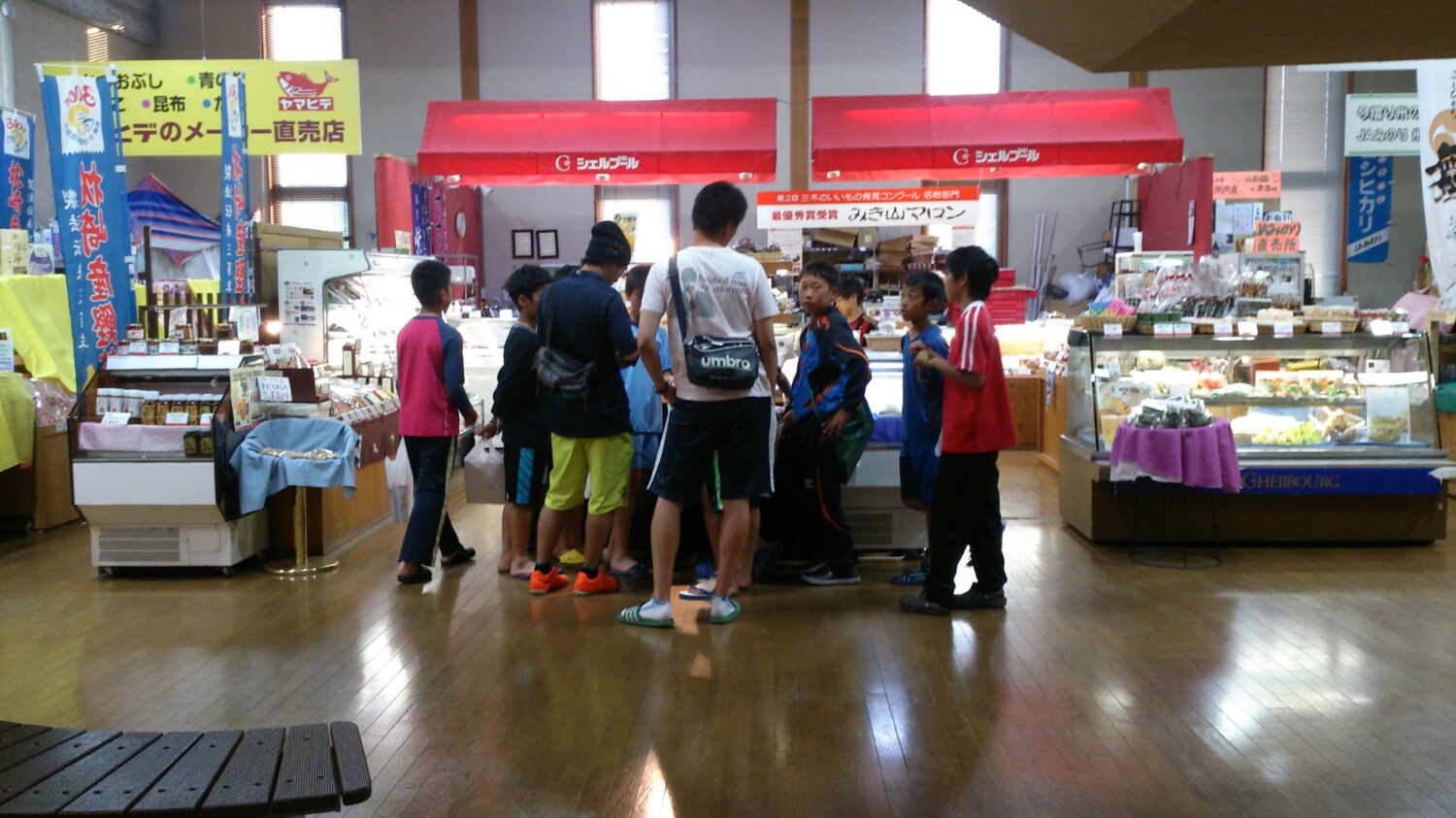 雨で濡れて汚れた体をお風呂で洗い流してから、近くの道の駅で各自お土産を購入。