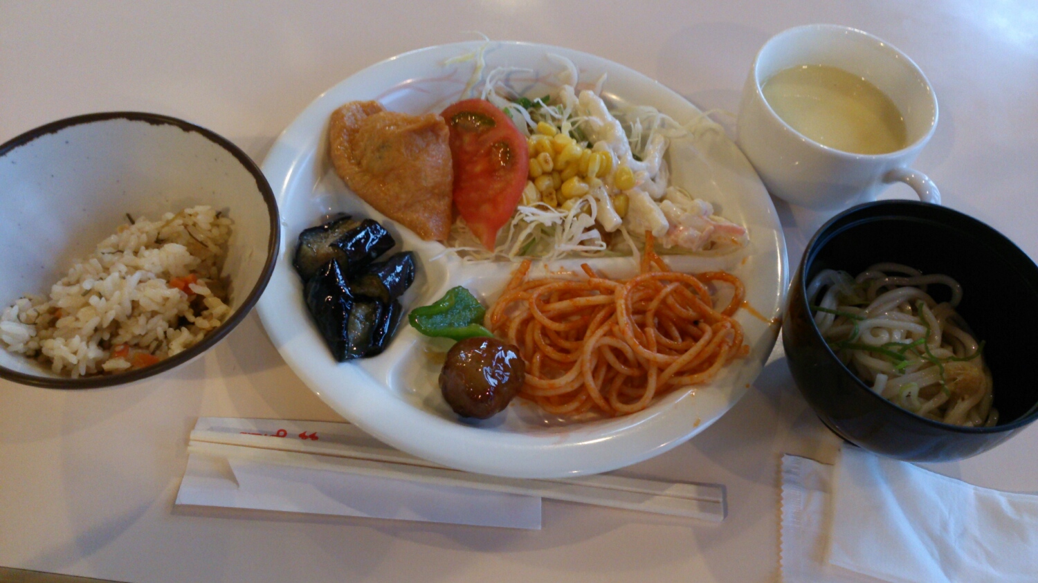 宿舎の食事はバイキングで、デザートもあるし美味しかった♬
