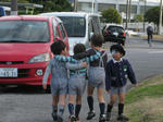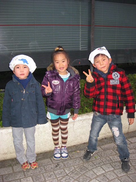 幼稚園から肩を組んで歩いて会場へ(笑)