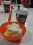 コストコでスプレータイプの生クリームを見つけたから、それを自分たちでアイスにトッピングして。