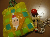 クリスマスお楽しみ会でサンタさんからプレゼントされたものは、昔ながらのけん玉とコマ。