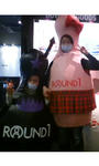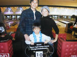 だいちが投げたら9本倒して、写真立てをプレゼントしてもらえ、記念写真も撮ってもらえた。