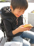 私はアップルカスタード味のサザエさん。だいちは小倉白玉味の波平をその場で食べた。
