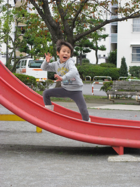 そのうちブーツを履いていたからつるつる滑るのに、滑り台をかけ上がることに熱中しだした。