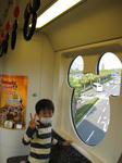 はちきれそうなお腹をかかえて、大好きなミッキーモノレールへ。