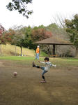 立派な遊具があったけど、広場でサッカーやキャッチボールをするほうが楽しいみたいで、しばらくみんなで汗をかいて遊んだ。