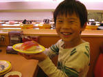 お腹がすいて、車で回転寿司に連れて行ってもらいお昼ご飯に♪