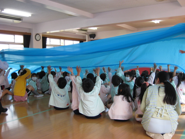 今日は幼稚園で役員主催の文化観賞会の催しで、キャンプ・ネポスのショーを幼稚園に見に行った。