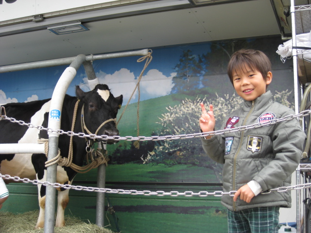 ミニSLに乗ったり、運よく整理券をゲットして牛の乳しぼり体験をさせてもらったり、いろいろ美味しいものを安く買ってきて食べたり(カレーは100円だった♪)、試食品をもらったり、マジックショーを見たり、ヤギを触ったりと楽しめた。