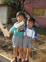 天気もいいし、のびのび廊下や園庭を走り回って過ごすんだろうなぁと思っていたら、ほとんど外で過ごして、お弁当も園庭にシートを敷いて食べたんだそうだ。