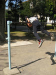 鉄棒を見つけ、だいちの背より高いほうので逆上がり出来る?とやってもらったらすんなり出来てしまった。