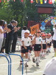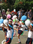 はちまきをしてポンポンを持って、組み体操を交えなかなか楽しい。