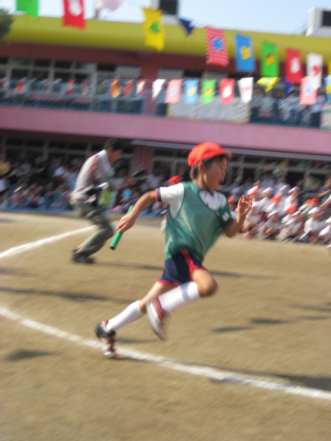 惜しくもだいちは2位でバトンを渡されて2位でゴール。