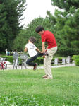公園の芝生の広場に着くとテンション↑