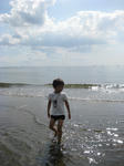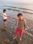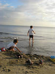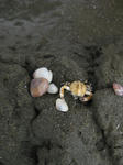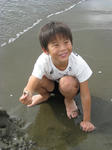 砂浜を掘って遊んでいたら、近くで遊んでいた女の子が小さいカニをくれた。