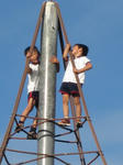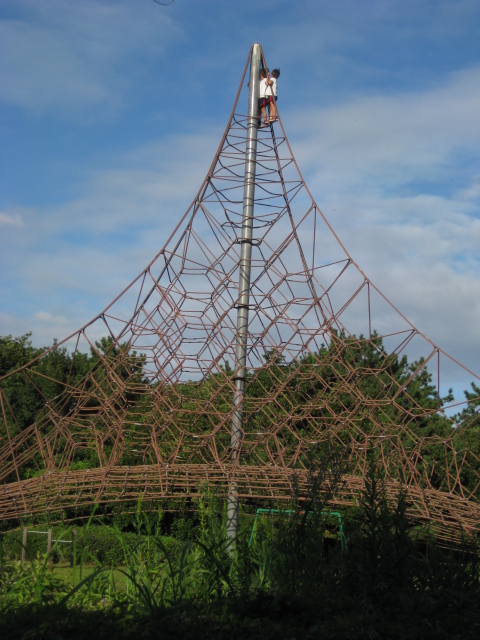 ロープで出来た遊具は1番上まではのぼったことがなかったけど、2人でてっぺんまで達成!