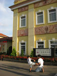 近くの焼酎&ビール工場にも立ち寄ってみたけど、ここでも外で戦いごっこ(苦笑)