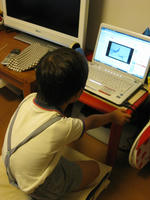写真は1人でパソコンを立ち上げて、you tubeのウルトラマンの動画を見ているところ。