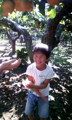 パパの実家へ行き、毎年行く梨園へじぃじ、ばぁばと歩いて行った。