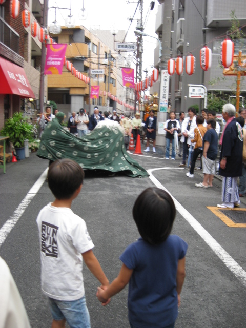 家の中で少し遊ばせてもらったあと、電車に乗ってお祭りに出かけた。
