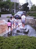 涼しくなってきたというのに水遊びに夢中。