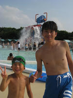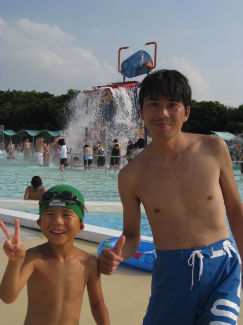 前日に旅行から帰って来たばかりなのに、海浜プールへ。