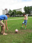 スタジアムまでの道のり、途中2人でマラソンしだしたり、遊んだり。