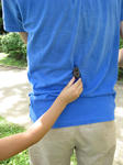驚いたセミは”ジジジジジーーー!!!”と飛び立ちパパの背中へ(笑)