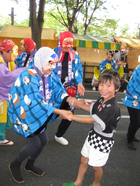 おみこしをかつぐ様子を見学したり、いろいろなパフォーマンスを見たり、踊りに参加したり。