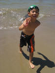 流れるプールで遊びたかったようでしばらく流れ、休憩時間は海に行って泳ぎの練習や、砂遊びをした。