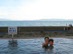 砂蒸し風呂が終わると隣接した露天風呂に浴衣ごと浸かり、海を眺めながら極楽~